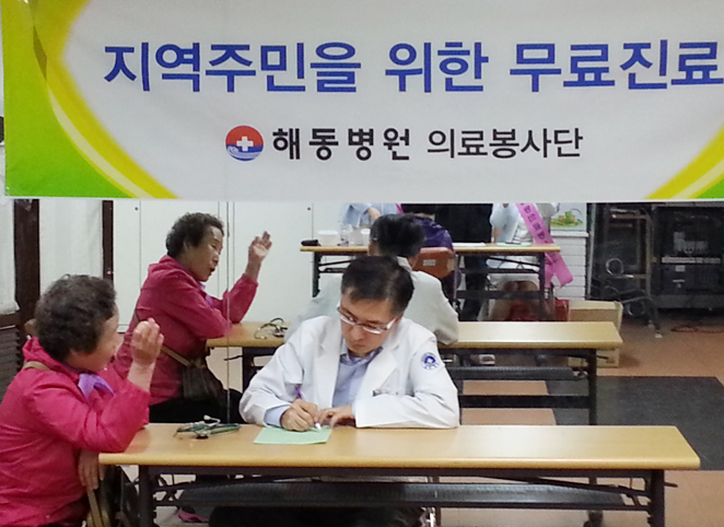 해동병원 의료봉사단은 2016년 4월 9일 영도구 동삼동 절영복지관에서